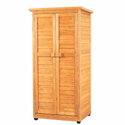 【特長】●家の軒下や勝手口の外、ベランダなどに適した木製の物置です。 プラスチック製トレー付きのため、小物の収納にも便利な上、物置 内のスペースを無駄なく活用することが可能です。また、レールの 位置が調節可能ですので、大小のトレーを自由に入れ替え可能 です。(トレー小は横向きでも入ります。)●商品全体のデザイン性に配慮した木製の取っ手部分はかんぬき 式の扉止めになっていて、扉の開閉が楽に行えます。扉の裏側に は反り返りを防止する補強金具を付けました。脚には地面との設置 面を腐りにくくするプラスチック製のキャップと、ガタツキを防止する アジャスターが付いています。●屋根は住宅用の屋根材を使用し、